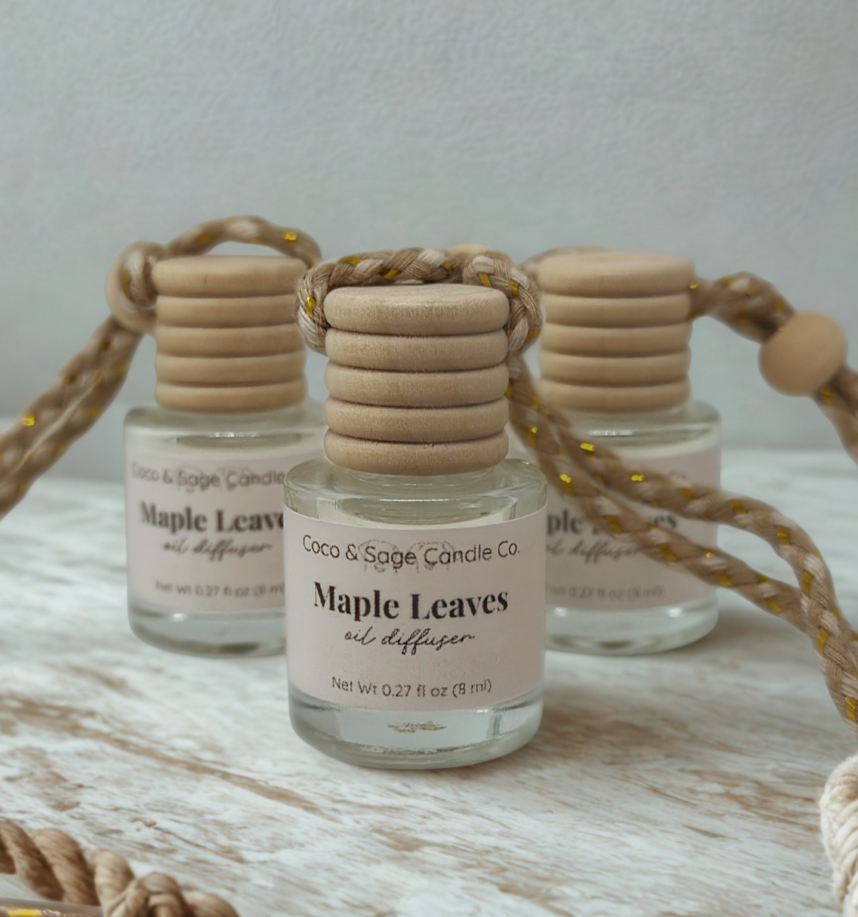 Oil based car diffuser with notes of plum, maple leaf, acorn, patchouli and sandalwood